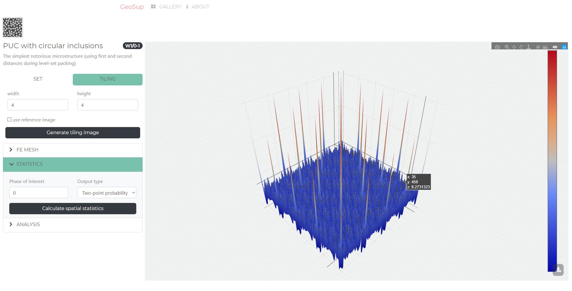 - stochastického popisu rozložení materiálové mikrostruktury založeného na prostorových statistikách (a především pak na rodině dvou-bodových pravděpodobnostních funkcí),
